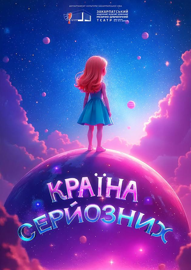 П’єса молодої української драматургині Марини Смілянець стала переможцем конкурсу «Коронація слова-2015» у номінації «П’єса для дітей». Філософська казка «Країна серйозних» нагадує відомі дитячі антиутопії Джанні Родарі «Джельсоміно в Країні брехунів» чи Міхаеля Енде «Момо». Режисер Михайло Фіщенко разом із молодими акторками Закарпатського муздрамтеатру пропонує юним глядачам подорож в невідомий світ, де діють зовсім інші правила поведінки, ніж ті, до яких ми звикли. Головне – залишатися собою, не втрачати оте людське, що закладене в нас від початку. І тоді добро подолає зло, як би його не охороняла система тотального контролю.