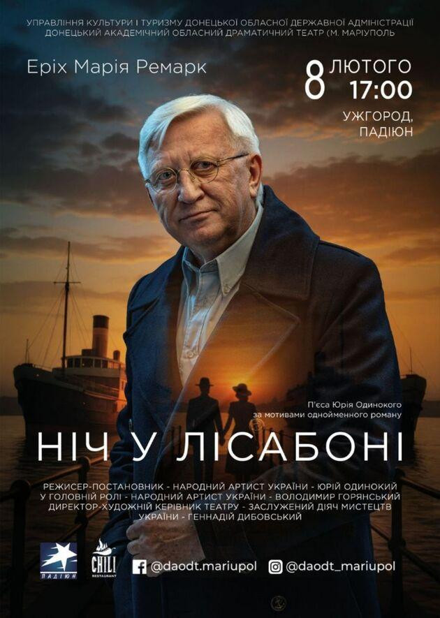 Ми знаємо сьогодні, як звучить сирена, як боляче від розлуки. Знаємо, що таке евакуація, як це - вціліти. Як важливо говорити, коли здається, що вже все сказано. Донецький театр (м. Маріуполь) - #ТЕАТРбезДАХУ - представляє одну із найсильніших історій XX століття. Еріх Марія Ремарк «Ніч у Лісабоні».