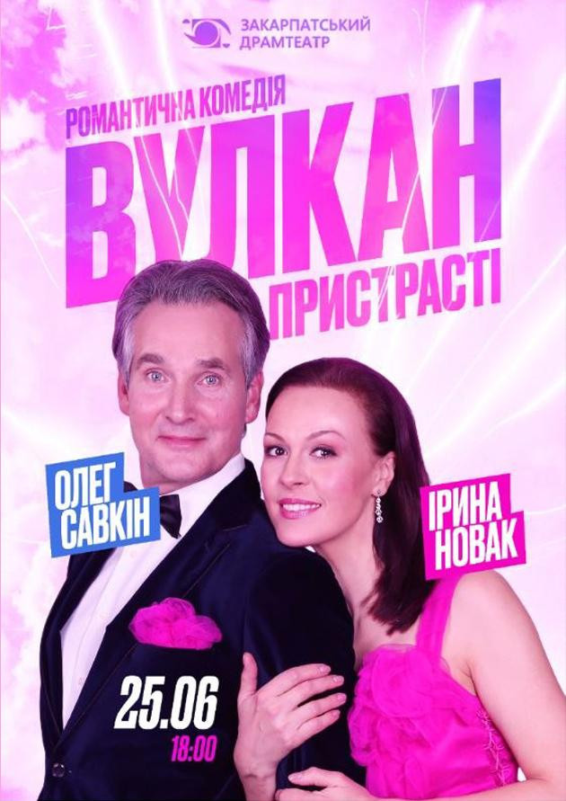 Олег САВКІН та Ірина НОВАК, медіазірки багатьох телевізійних та театральних проектів України, заслужені артисти України, ведучі октори Київського театру ім. Лесі Українки, в блискучій романтичній комедії "Вулкан пристрасті"!