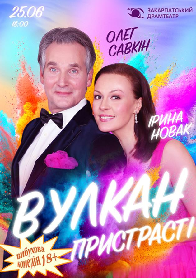 Заслужений артист України, Олег САВКІН та заслужена артистка України, Ірина НОВАК, медіазірки багатьох телевізійних та театральних проектів України, провідні актори Київського театру ім. Лесі Українки, в блискучій, ексцентричній комедії "Вулкан пристрасті"!