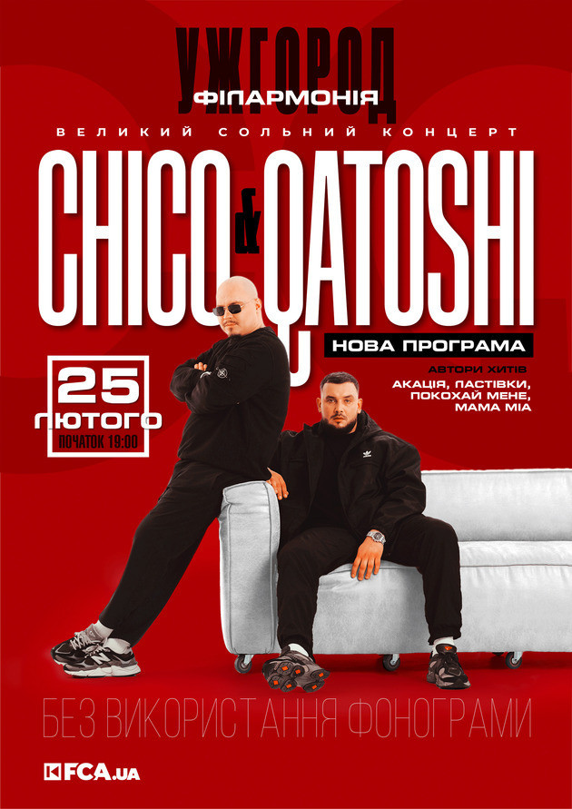 Вже зовсім скоро Chico & Qatoshi дають свій сольний концерт у вашом місті, де разом з вами заспівають улюблені хіти та нові пісні.