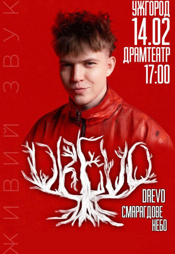 DREVO в Ужгороді: концерт, на який чекало місто 14 лютого відбудеться великий сольний концерт українського співака DREVO — автора гучного хіта “Смарагдове небо”, який став справжнім музичним феноменом року. З моменту релізу у травні 2025 року "Смарагдове небо" не сходить з перших позицій топ-чартів Spotify, Apple Music, YouTube Music, Shazam та утримує лідерство вже третій місяць поспіль. Пісня стала вірусною в TikTok, зібравши понад 100 тисяч відео під оригінальний звук. DREVO (справжнє ім’я — Максим Дерев’янчук), родом із Вараша Рівненської області, став відомим завдяки своїм емоційним та мелодійним композиціям. Він — фіналіст Національного відбору на «Євробачення-2024» із піснею "Endless Chain", автор треків, які вже стали улюбленими серед українських слухачів: - "Самолітом" — перший великий прорив артиста. - "Ластівка" — ніжна, лірична композиція, що полонила серця. - "Де би де би" — драйвовий трек, який закріпив впізнаваний стиль DREVO. Окремою сторінкою в кар’єрі співака стала колаборація з чемпіоном світу з боксу Олександром Усиком — “Терпи, козак”, створена на основі вірша спортсмена. Концерт стане унікальною можливістю почути наживо як легендарне "Смарагдове небо", так і інші улюблені пісні DREVO у супроводі живого бенду, відчути енергію артиста та атмосферу свята.