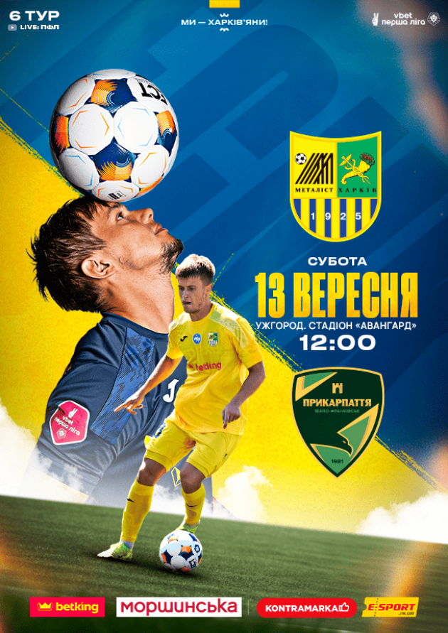 У суботу, 13 вересня, о 12:00 харківський "Металіст" проведе черговий матч VBET Першої ліги в Ужгороді.
